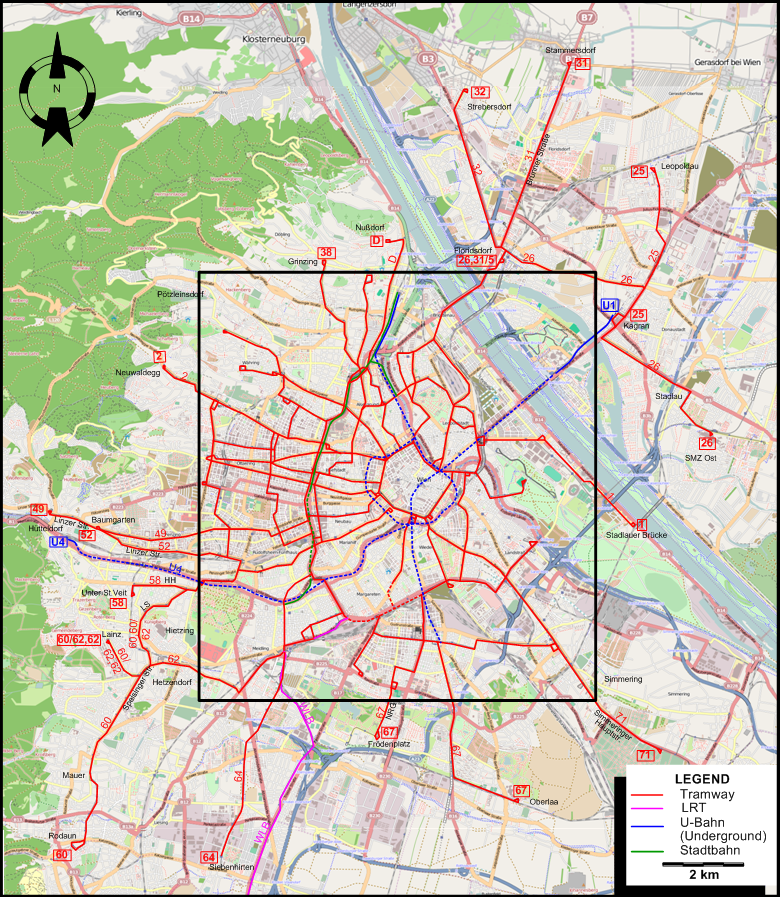 | 31 | Schottenring – Augarten – Wexstraße – Stromstraße – Friedrich-Engels-Platz – Floridsdorfer Brücke – Floridsdorf – Brünner Straße – Stammersdorf |