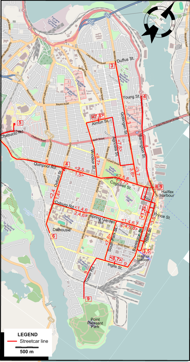 | 6 | Dingle | Halifax Harbour - Barrington St. - Spring Garden Rd. - Coburg Rd. – Dalhousie |