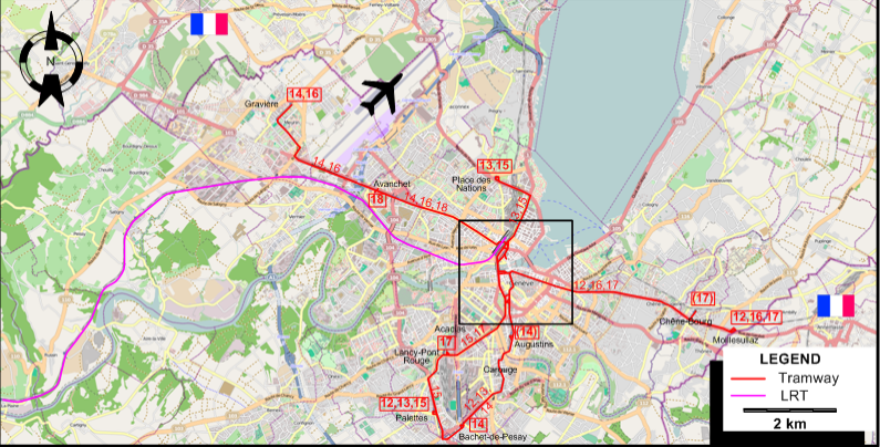 | 17 | Lancy-Pont Rouge - Acacias - Plainpalais - Place-Neuve - Rive - Chêne-Bourg - Moillesullaz [Weekdays/Saturday during the day] |