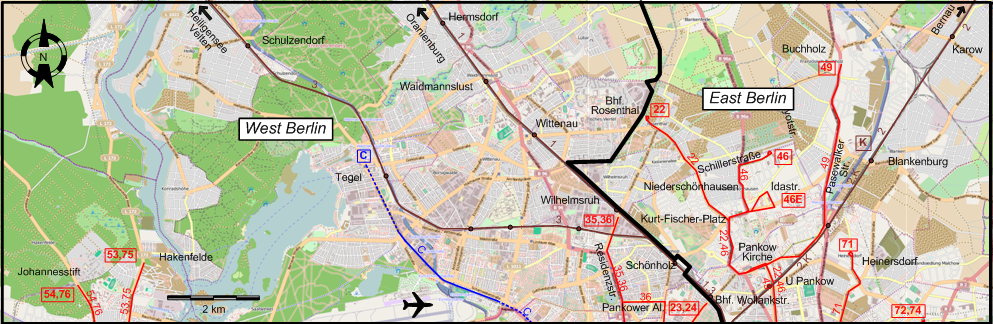- 1960 Oct. 1: Wilhelmsruh – Residenzstr. – Reinickendorfer Str., Perleberger Straße (western part)