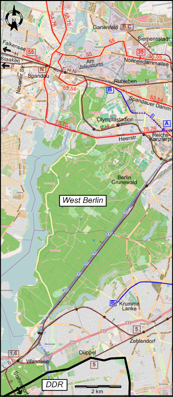 | 75 | Zoologischer Garten – Kantstr. – Reichskanzlerpl. (Theodor-Heuss-Platz) - Heerstr. – Spandau – Hakenfelde |
