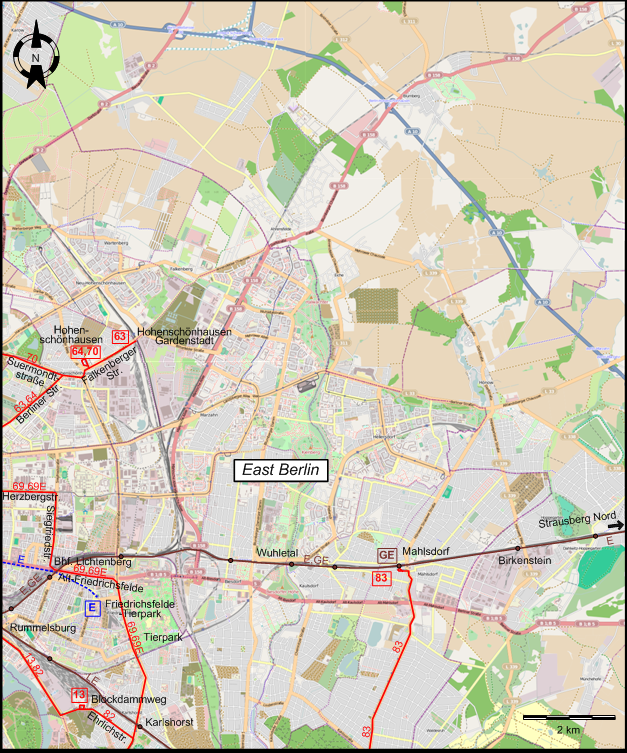 - A map showing Eastern and northeastern Berlin