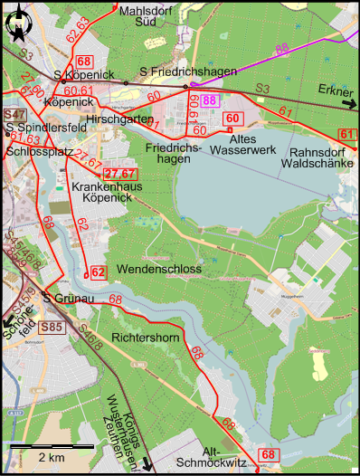 | 68 | S Köpenick - Köpenick – Schlossplatz - S Grünau - Richtershorn - Alt-Schmöckwitz |