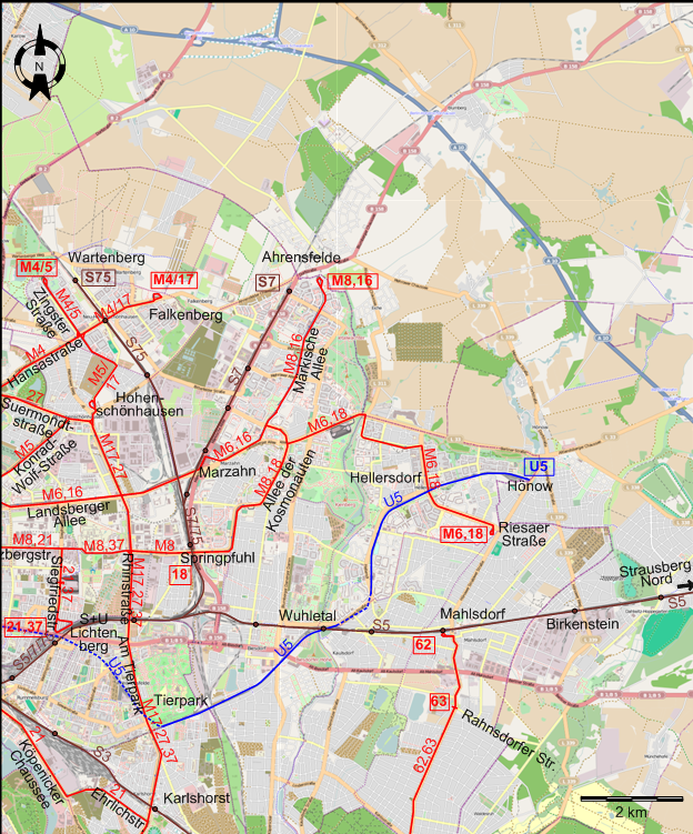 | S75 | Warschauer Str. - Ostkreuz - Lichtenberg - Springpfuhl - Hohenschönhausen - Wartenberg |