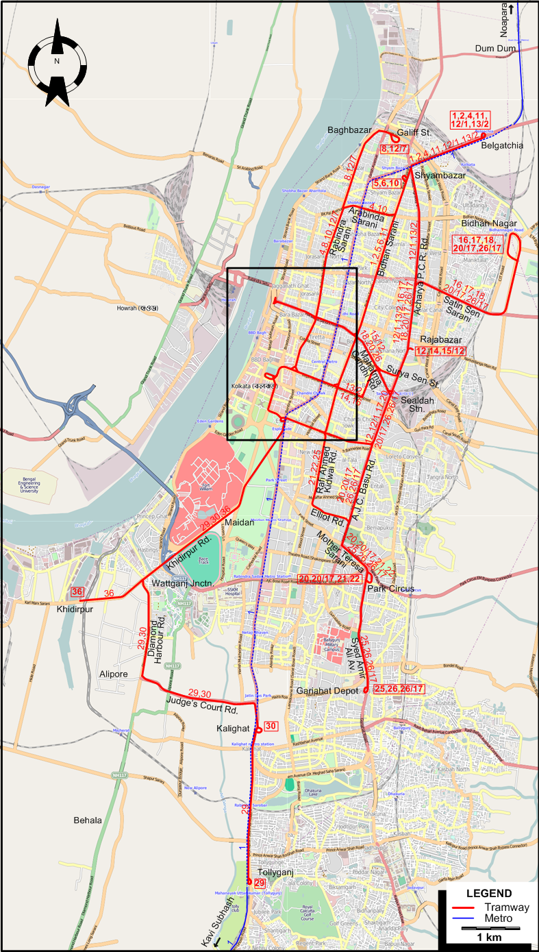| 11 | Howrah Bridge - Mahatma Gandhi Rd. - Bidhan Sarani - Shyambazar - Belgatchia |