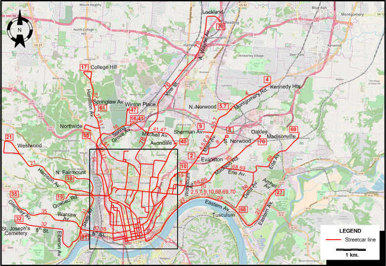 | 21 | Westwood | Dixie Terminal - Elm St. - McMicken Av. - Central Av. - Viaduct - Harrison Av. - Westwood |