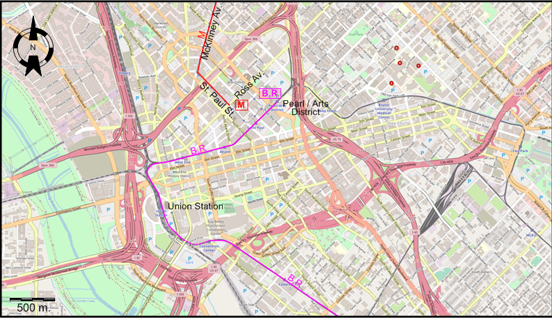 | M | M Line | Ross Av. - St. Paul St. - McKinney Av. - Hall St. |